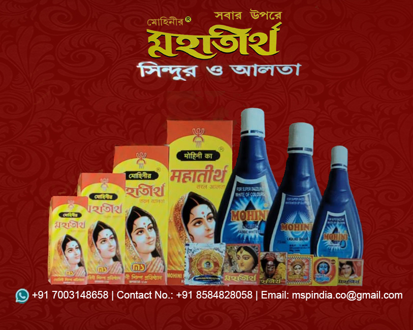 Alta & Sindur is the symbol of luck of every Human in every holy progress with heavenly feelings specially for woman. Indian and Bengal Spiritual and Beauty of women shows best with Mohini’s Mahatirtha Sindur & Mohini’s Mahatirtha Alta. late Manindra Mohan Dutta established Mahatirtha Sindur Company in the year 1944 after that Mr. Monotosh dutta Started with the blass his father Mohini Shilpa Protisthan. Today, this company not only in kolkata,has been speeded out of west Bengal & in all over India. Monotosh Dutta the Yenger son of late M.M. Dutta, has been developing it successfully in the year 2004. speciality of Mohini’s Mahatirtha Sindhur & Alta is that it does not react on human skin or harm. people should be aware of duplicate of Mohini’s Mahatirtha Sindur as some greedy dishonest businessmen are duplicating it to use the popularity of this brand & misleading the people. people should check the no of Mohini’s Mahatirtha Sindur registered Number- 780601 by government of india on every pack of original Mohini’s Mahatirtha Sindur & Alta to save themselves from duplicate.